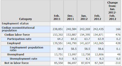 Please consider the Bureau of Labor Statistics (BLS) February 2012 Employment Report.